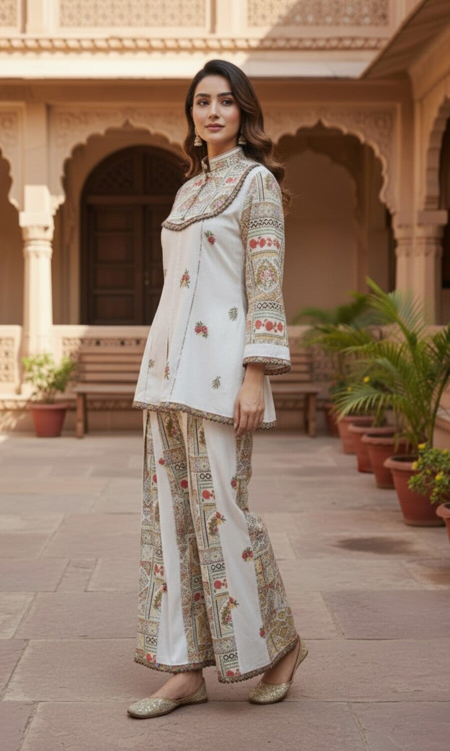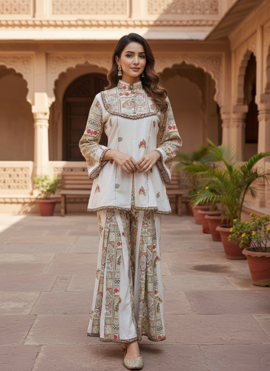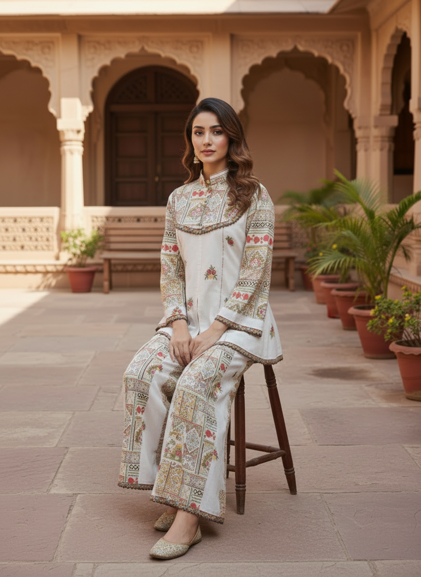 The set is interpretation of quiet power dressing for the modern Women. This look reimagines dress as a state of mind. Minimal, architectural, and deeply refined — it’s for the woman who doesn’t need embellishment to feel adorned.